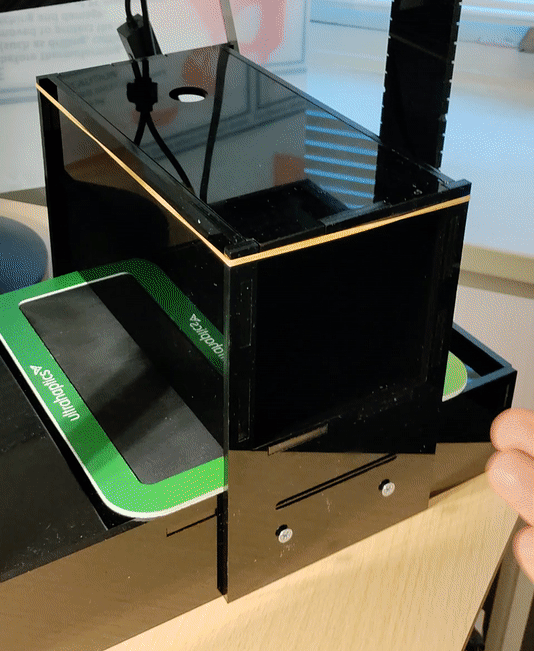 - Place your arm on the armrest, such that your arm does not touch the box. You can rest your hand at the back of the box.